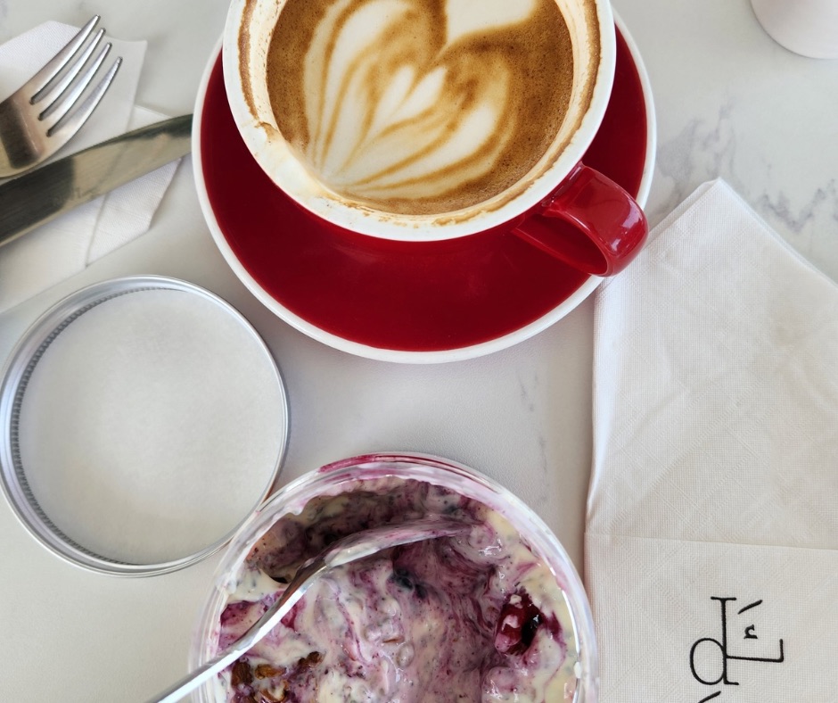 This time, we opted for a simple menu. Because I was still on my calorie deficit journey, I went with the yoghurt, granola and berries (my usual breakfast at home, nothing new) but here, it was super delicious. I was having it with a cup of cappuccino. J enjoyed his americano with turkish egg breakfast (I forgot the name), while the boys had a big breakfast and eggs benedict.